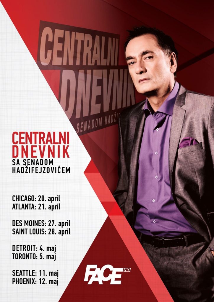 – U periodu između 20. aprila i 12. maja, četiri vikenda uzastopno planiramo realizaciju „Centralnog dnevnika“ iz Amerike, sve sa ciljem spajanja dijaspore i matice. Promocija uspješnih i mladih, te ekskluzivne reportaže su uvijek sastavni dio „Centralnog dnevnika“ i uredničke strategije, a posjeta mladim u Americi i prenošenje pozitivne slike o njihovim postignućima će svakako imati posebnu vrijednost, kako onima o kojima ćemo praviti priče, tako i Bosancima i Hercegovcima širom matice i cijelog svijeta. Očekuje nas bosanskohercegovačka, a svjetska priča i sve to naravno na Face TV- u – kaže Senad Hadžifejzović.