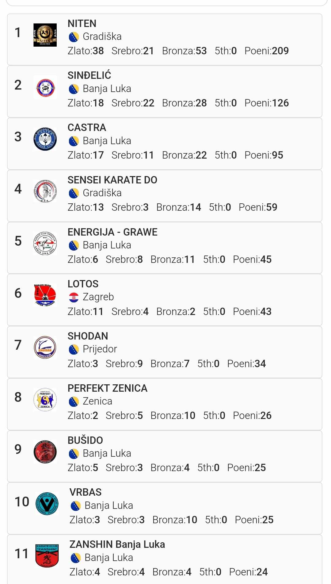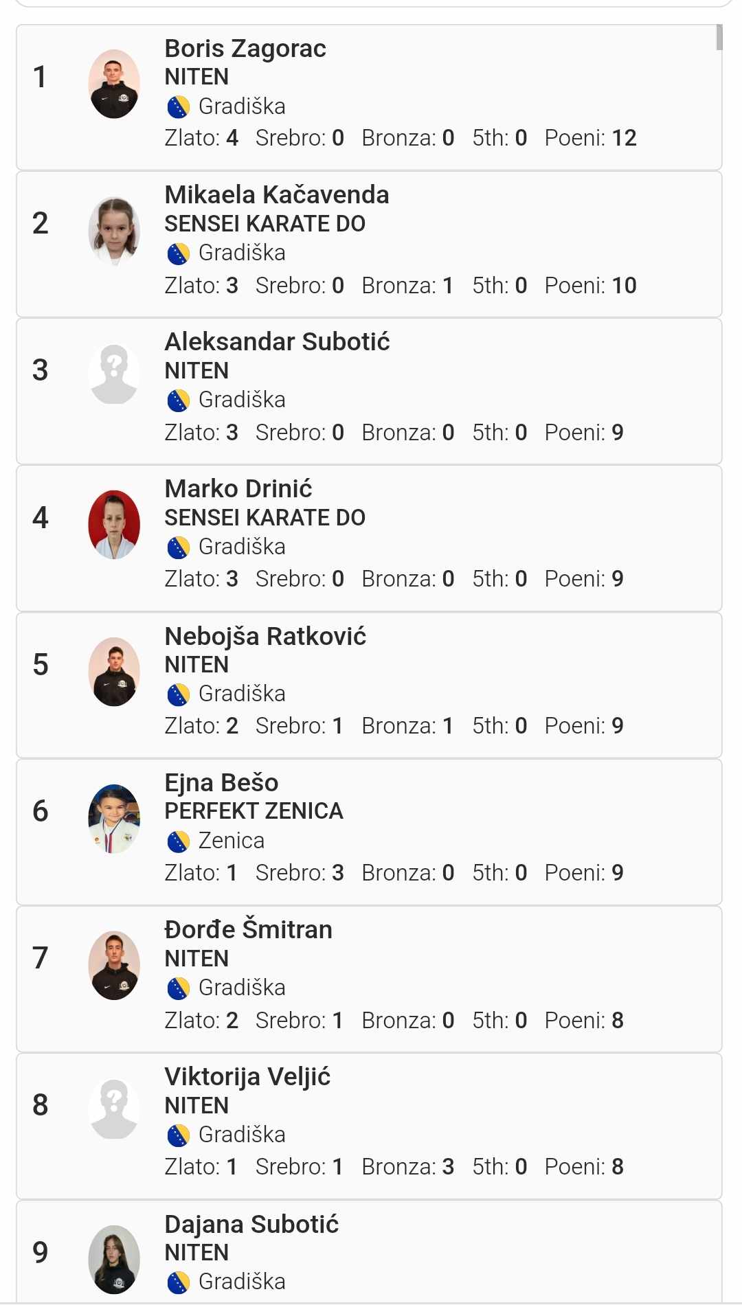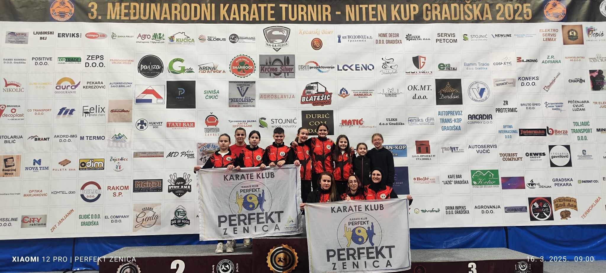 U nedjelju, 16. marta, Karate klub Perfekt Zenica nastupio je na 3. Međunarodnom karate turniru Niten Karate Kup – Gradiška 2025, koji je okupio 670 takmičara iz 42 kluba iz šest zemalja (Austrija, Švicarska, Slovenija, Hrvatska, Srbija i BiH). Klub je nastupio sa osam takmičara u 28 kategorija i osvojio 17 medalja, zauzevši visoko 8. mjesto u ukupnom plasmanu.