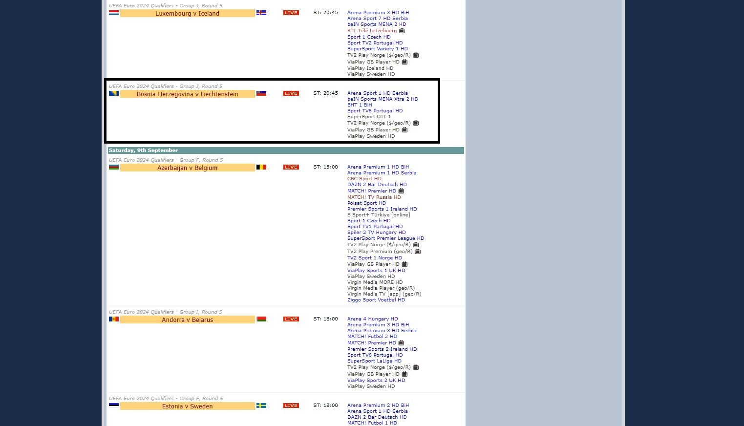 Ekskluzivna prava za teritoriju BiH posjeduje državna televizija – BHT1, a skromnu listu kanala koji će emitovati signal sa Bilinog polja pogledajte u nastavku: