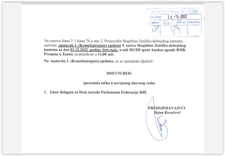 S obzirom da je CIK na sjednici 29. novembra ovjerio liste političkih stranaka te da nakon ovjere slijedi rok žalbe od dva dana, najizglednije šanse su da će biti validna sjednica koja će biti održana u petak, 2. decembra, a koju je zakazao Ćazim Huskić, a ne 1. decembra kako je zakazao Kovačević.