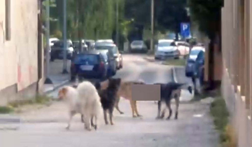 Na videu se vidi čopor pasa lutalica ili pasa beskućnika, kako ih se uglavnom naztiva, koji su u čeljustima nose rastrgnutu mačku.