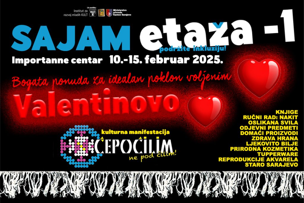 Za period od 10.02. do 15.02.2025. u Importanne centru na etaži -1 (Kod Konzuma) Udruženje “Green Art” organizira kulturnu manifestaciju “ČEPOĆILIM”.
