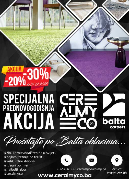 Akcija od -30% na kompletan asortiman tepiha traje do 31.12.2017. godine. Najbolji izbor, Ceralmyco!”