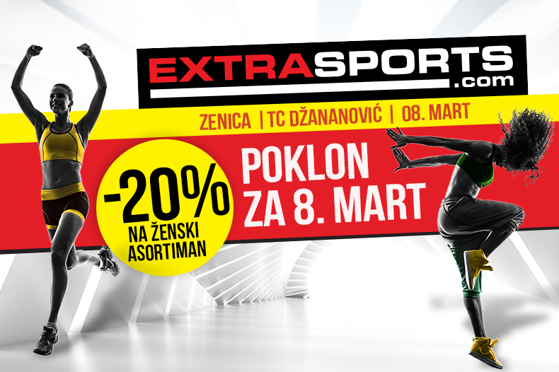 U Extra Sports radnjama, 08.03. slavimo praznik žena, uz 20% popusta na kompletan ženski asortiman.
