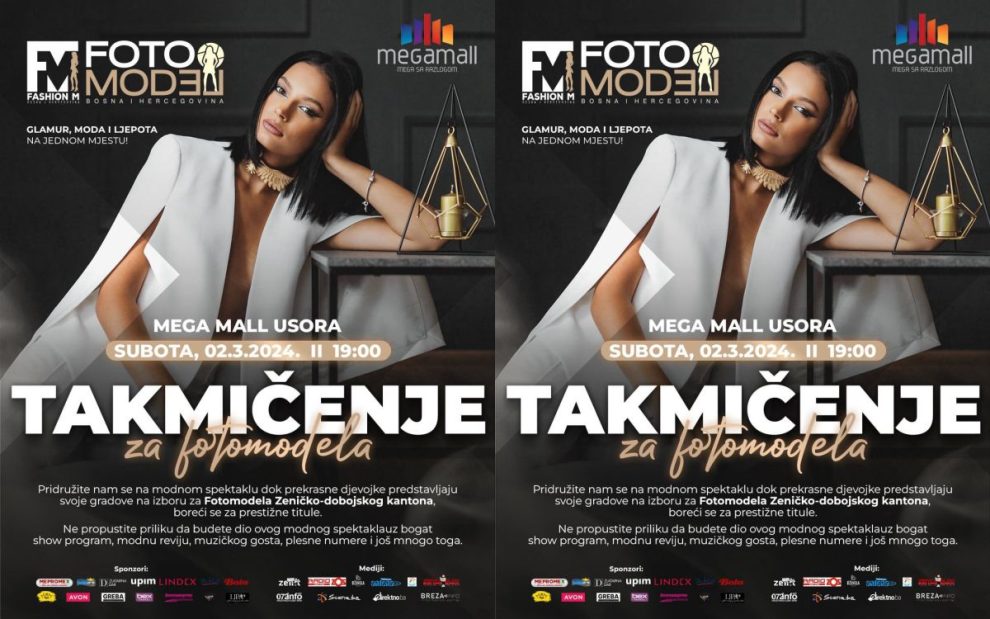 Direkcija Fotomodela Bosne i Hercegovine i Mega Mall s ponosom predstavljaju Izbor za Fotomodela Zeničko-dobojskog kantona! Uplovite u svijet ljepote gdje se prekrasne djevojke natječu za prestižne titule i šansu da zasjaju na Federalnom takmičenju!