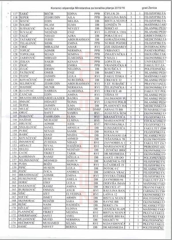 Spisak dodjeljenih stipendija objavljen je na oglasnoj ploči Grada Zenice, te ga prenosimo ovdje. Služba za boračko-invalidsku zaštitu Grada Zenice.