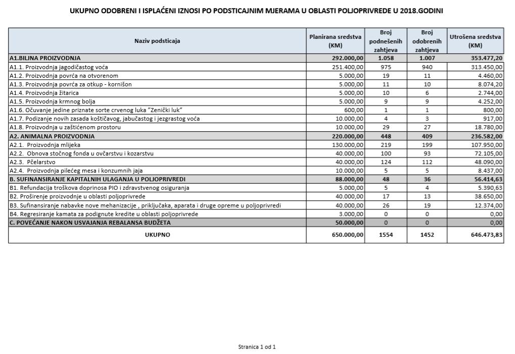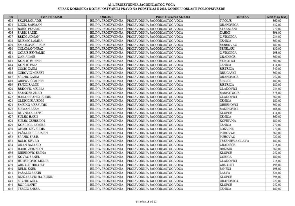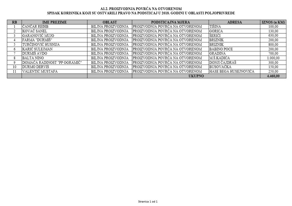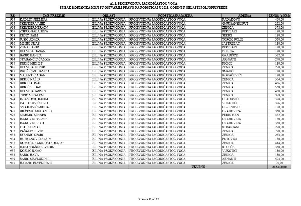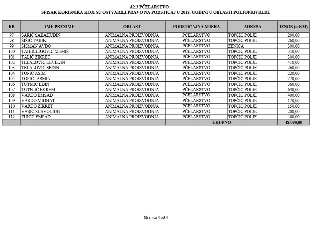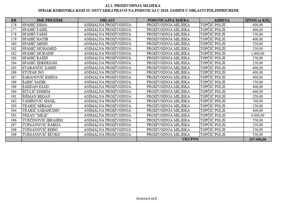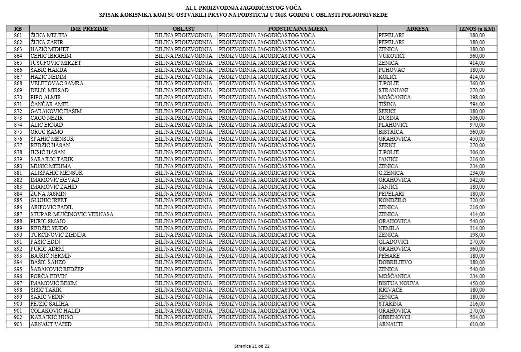 U oblasti poljoprivrede na tridesetak stranica nalaze se spiskovi onih koji su dobili novčana sredstva za pčelarstvo, mljekarstvo, ovčarstvo i kozarstvo, proizvodnju koštićavog ili jezgrastvog voća, proizvodnju u zaštićenim prostorima, uzgoj jagodičastog voća, povrće na otvorenom…