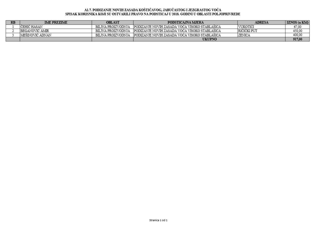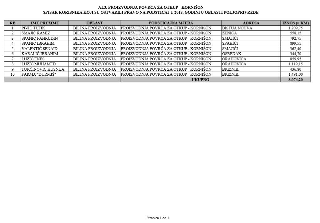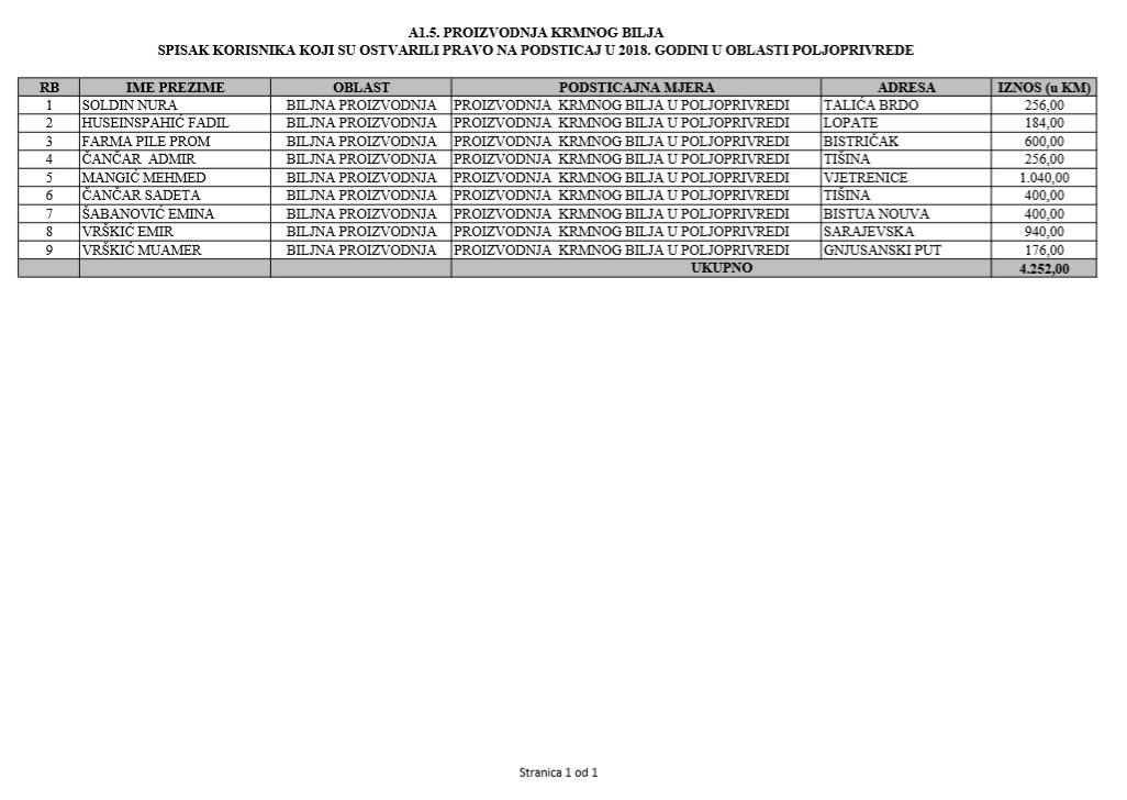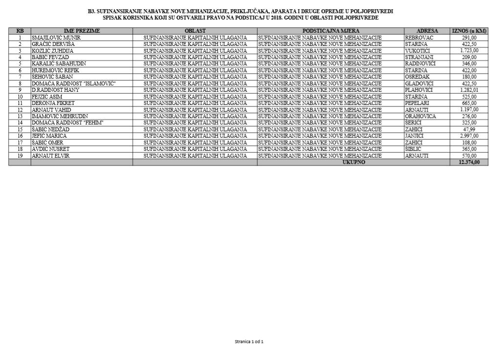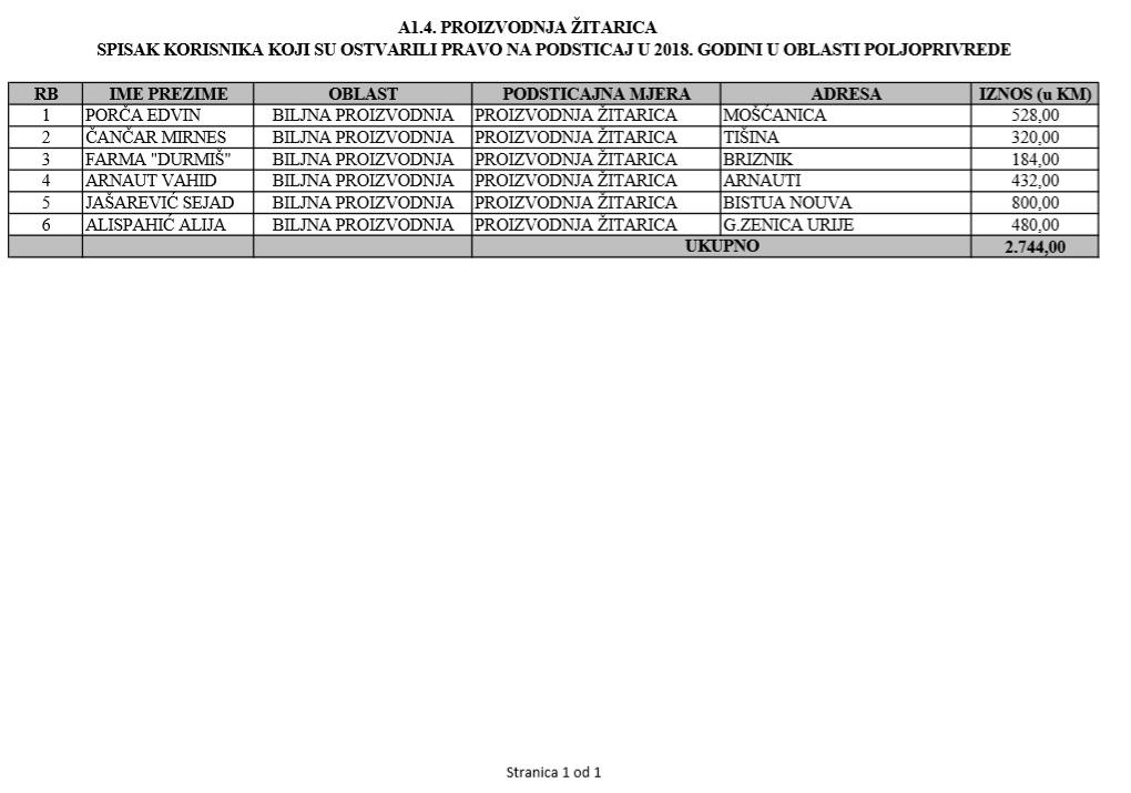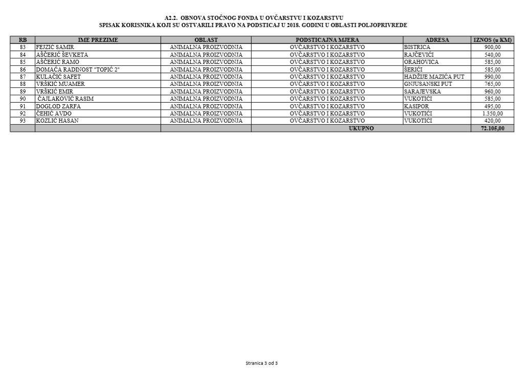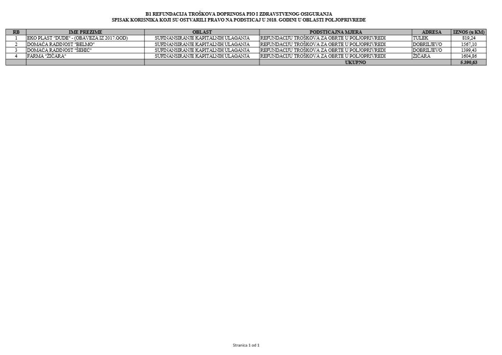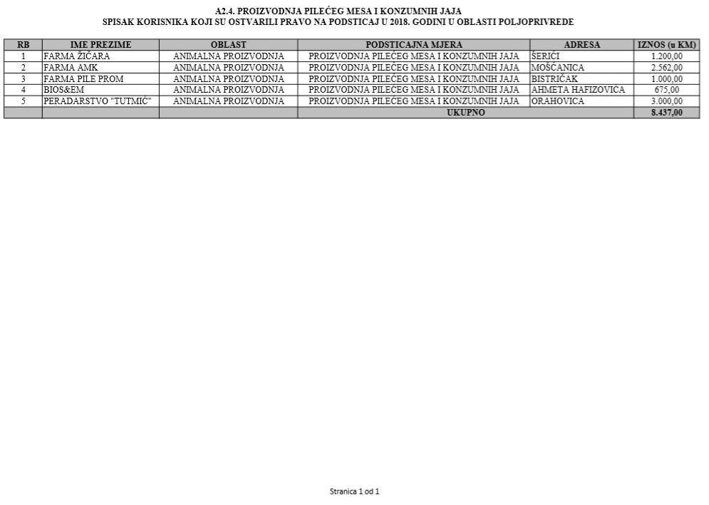 U oblasti poljoprivrede na tridesetak stranica nalaze se spiskovi onih koji su dobili novčana sredstva za pčelarstvo, mljekarstvo, ovčarstvo i kozarstvo, proizvodnju koštićavog ili jezgrastvog voća, proizvodnju u zaštićenim prostorima, uzgoj jagodičastog voća, povrće na otvorenom…
