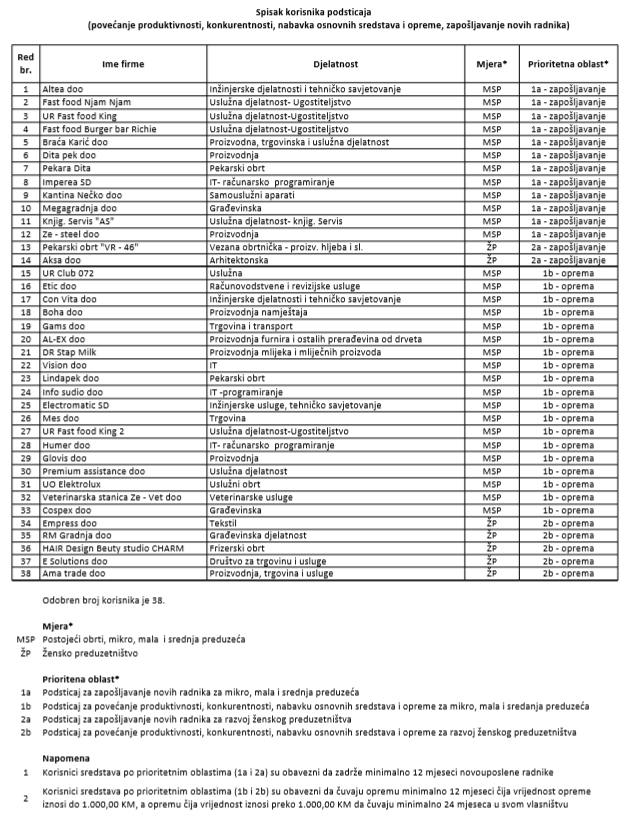 Spisak osoba i firmi koje su dobile poticaje Grada Zenica iz poljoprivrede i privrede u 2018. – Gradska uprava Grada Zenica je, u formi materijala za narednu sjednicu Gradskog vijeća, objavila spiskove svih osoba koji su dobili neku vrstu poticaja u oblasti privrede i poljoprivrede.
