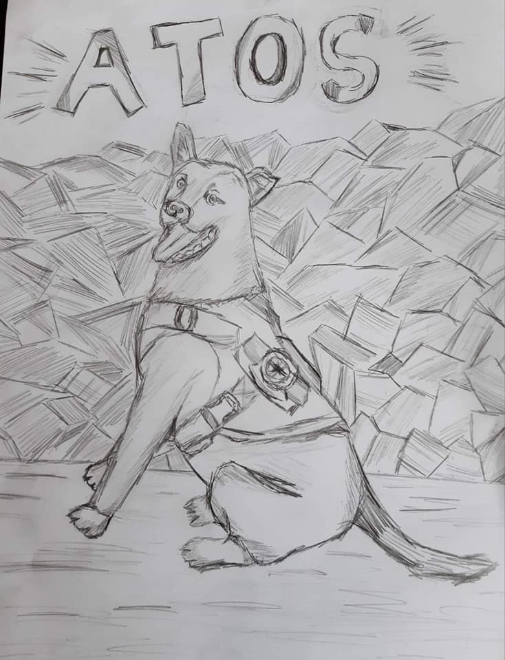 Cijeli svijet je čuo za ATOSA, zeničkog psa tragača koji je dio tima zeničke GSS pa je spisateljica Ajna Dedić, odlučila djecu motivisati da crtaju i budu kreativna u crtanju heroja, zeničkog psa Atosa, te ih za to nagradila.