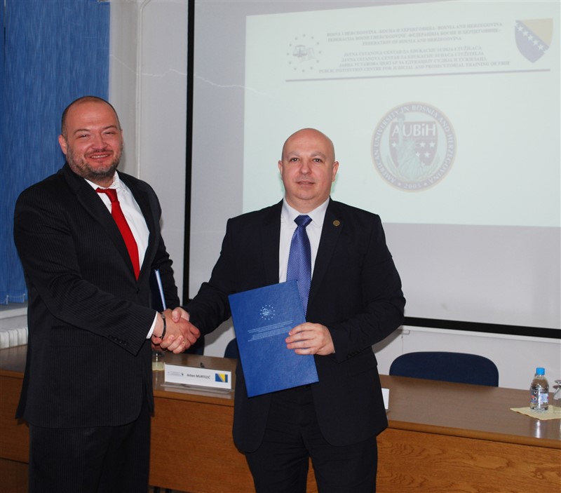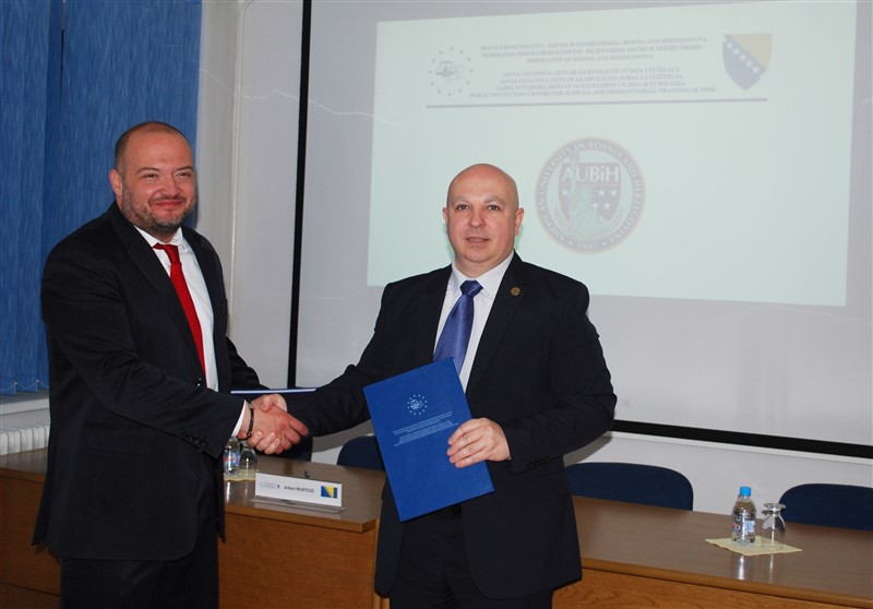 Sporazum o saradnji JU Centar za edukaciju sudija i tužilaca FBiH i AUBiH: Nova znanja i vještine za sudije, tužioce i studente –  Sarajevo, 10. maj 2017. – Javna Ustanova Centar za edukaciju sudija i tužilaca u Federaciji Bosne i Hercegovine i Američki univerzitet u Bosni i Hercegovini (AUBiH) uspostavili su Sporazum o saradnji. Sporazum su danas potpisali Denis Prcić predsjednik AUBiH i Arben Murtezić direktor JU Centar za edukaciju sudija i tužilaca FBiH.