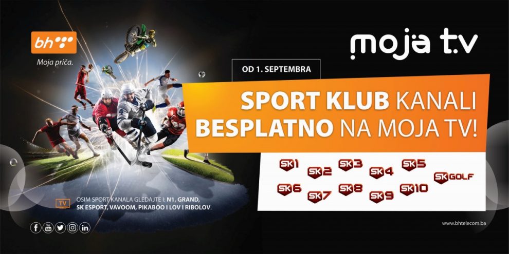 Sport Klub kanali od 1. septembra besplatno na Moja TV – Kao što je javnosti poznato, BH Telecom je tokom dužeg vremenskog perioda nastojao osigurati korisnicima Moja TV usluge praćenje atraktivnih utakmica i drugih sportskih sadržaja koji se emituju na TV kanalima Sport Kluba. To nastojanje je nedavno uspješno i realizirano u saradnji sa Sport Klub d.o.o. Sarajevo, agentom principala United Media S.à.r.l. iz Luxembourga.