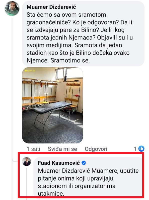 Naime, Kasumović je odgovarajući na upit (a ne kritiku) o stanju infrastrukture stadiona, odgovorio da se pitanje treba uputiti “onima koji upraavljaju stadionom ili organizatoru utakmice”.