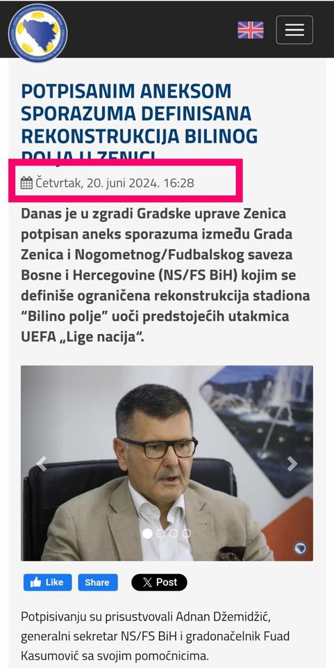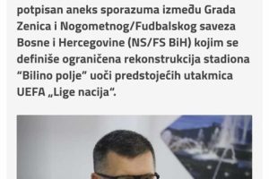 – Sljedeća utakmica je prema rasporedu 11.10.2024. godine protiv odgovarajuće selekcije Njemačke. Moramo izvesti neophodne tehničke intervencije na stadionu kako bismo stvorili idealne uslove za gledanje utakmica naše A reprezentacije u narednom ciklusu UEFA Lige nacija”, istakao je generalni sekretar NS/FS BiH Adnan Džemidžić i zahvalio se Kasumoviću i saradnicima na podršci pri osiguravanju uslova za zajedničko djelovanje u cilju modernizacije stadiona “Bilino polje” i stvaranja optimalnih uslova za odigravanje reprezentativnih utakmica, što je objavljeno i na stranici Nogometnog saveza BIH (NA OVOM LINKU)