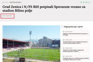 – Osnovni sporazum predviđa da se odnos investicija u stadion „Bilino Polje“ odnosi 51:49 %, Grad Zenica i NS/FS BiH. Radovi moraju biti okončani do septembra, kako bi mogli nesmetano krenuti u novi ciklus odigravanja međunarodnih utakmica u Zenici, istakao je Kasumović.