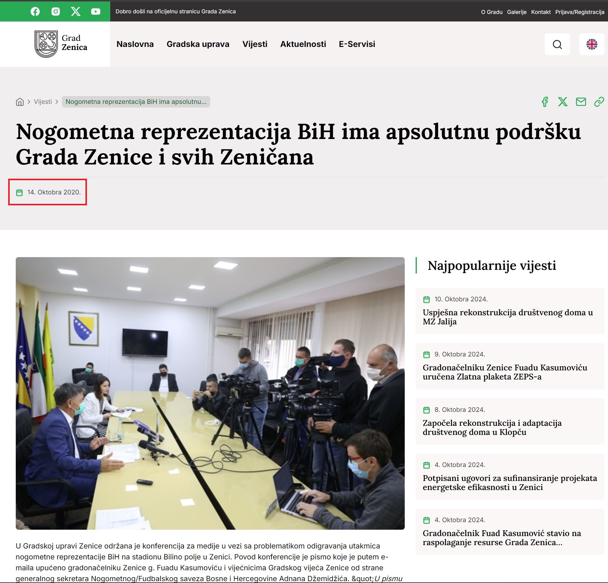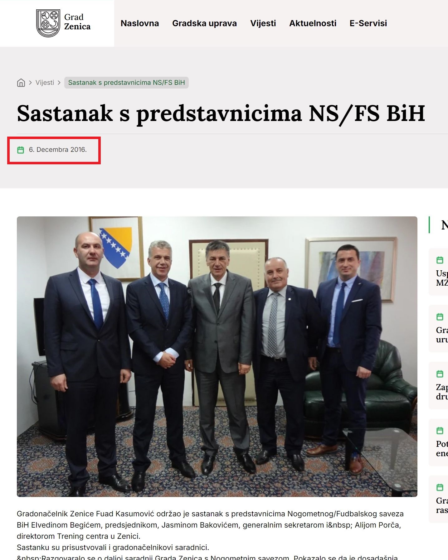 – Ponosni smo što će reprezentacija igrati i pobjeđivati kod nas, a ja sam zahvalan NS/FS BiH na korektnoj saradnji, istakao je 20. juna gradonačelnik Fuad Kasumović, što je objaavljeno id anas stoji na zvaaničnoj stranici Grada Zenica (Vidjeti NA OVOM LINKU)