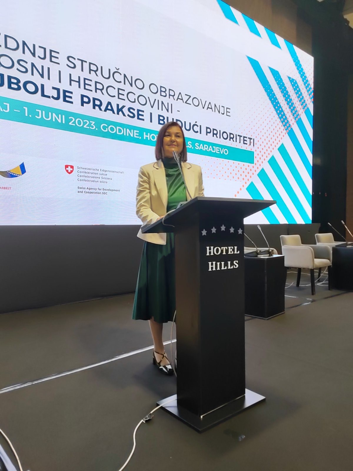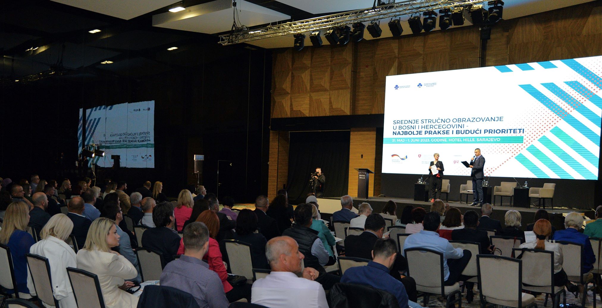 Dvodnevna konferencija o temi “Srednje stručno obrazovanje u Bosni i Hercegovini – najbolje prakse i budući prioriteti”, koja je održana u periodu 31. maj – 1. juni 2023. godine u Kantonu Sarajevo okupila je oko dvije stotine predstavnika međunarodnih organizacija, resornih ministarstava, obrazovnog sektora i privrednog života BiH kako bi kroz zajednički dijalog kreirali prijedloge koje će doprinijeti unapređenju srednjeg stručnog obrazovanja u BiH. Istaknuta je neophodnost sinergijskog djelovanja svih relevantnih aktera, koji mogu pomoći u afirmaciji i uspostavljanju što uspješnijeg modela srednjeg stručnog obrazovanja, a prvenstveno jačanju saradnje između kompanija i škola radi uspostave što kvalitetnije praktične nastave.
