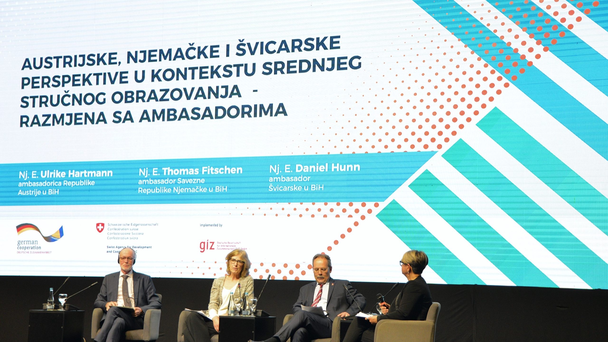 Prisutnima su se obratili Ulrike Hartmann, ambasadorica Republike Austrije u BiH, Thomas Fitschen, ambasador Savezne Republike Njemačke u BiH i Daniel Hunn, ambasador Švicarske u BiH, koji su istakli značaj ove teme i za mlade i za poslovnu zajednicu u BiH, te naglasili svoju spremnost nastavka pružanja potrebne podrške projektima koji imaju za cilj unaprijediti obrazovni sistem u BiH i omogućiti ekonomski prosperitet BiH.