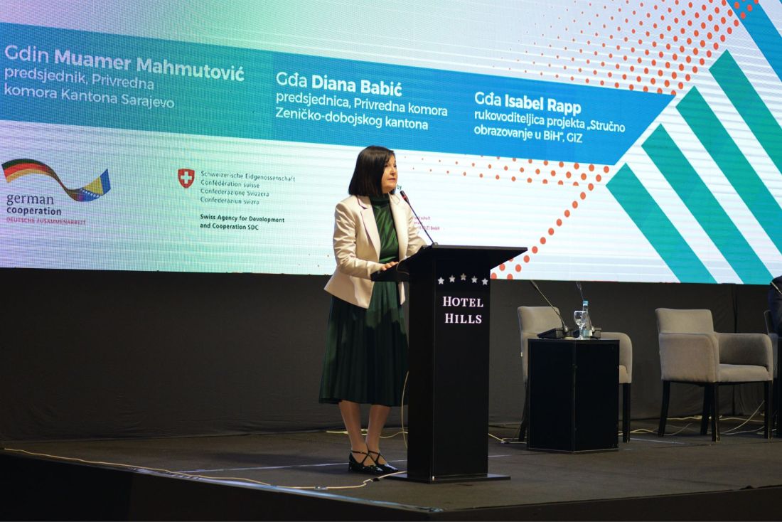 Gđa Isabel Rapp, voditeljica GIZ-ovog projekta „Stručno obrazovanje u BiH“ naglasila je da je BiH država puna potencijala u mnogim aspektima, a to uključuje i potencijal za bolji sistem srednjeg stručnog obrazovanja. “Mnoge škole su tokom perioda provođenja ovog GIZ-ovog projekta shvatile da samo kroz saradnju sa kompanijama mogu ispuniti svoj cilj, a i broj bh. kompanija spremnih na saradnju se stalno povećavao, što ukazuje na određene pomake i ohrabruje nas da nastavimo djelovati u ovom pravcu”, kazala je Rapp.