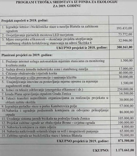 “Svake godine, Ministarstvo za prostorno uređenje, promet i komunikacije i zaštitu okoline ZDK Gradu Zenici vrši uplatu sredstava koja su namijenjena za podsticanje mjera zaštite i unaprjeđenja okoline. Ovim sredstvima su finansirani brojni eko projekti koje naši sugrađani već prepoznaju u Zenici, a kao što je osvjetljavanje pješačkih mostova LED rasvjetom, izgradnja šetnice i biciklističke staze u naselju Blatuša, utopljavanje stambenih objekata kolektivnog stanovanja, čišćenje obaloutvrda i riječnih korita kao što je bio slučaj sa koritom rijeke Kočeve, zatim izgradnja pješačke staze u parku na Kamberovića polju prema Adi Jagnjište, uvođenje sistema javnih bicikala, nabavka natkrivenih solarnih klupa sa WIFI-jem i mogućnošću punjenja elektronskih uređaja, nabavka kontejnera za staru odjeću itd. Raduje me da je značajan udio sredstava Fonda za zaštitu okoliša opredijeljen upravo za eko projekte u Zenici, a u narednom periodu ćemo nastojati opredijeliti i više sredstava jer zdravlje Zeničana i činjenica da svakodnevno udišu najnekvalitetniji zrak u državi, na Balkanu i šire, ostavlja nam u obavezu da se nastavimo odlučno i uporno boriti za rješavanje problematike aerozagađenja i drugih eko projekata u Zenici”, kaže Arnel Isak, ministar za prostorno uređenje, promet i komunikacije i zaštitu okoline ZDK.