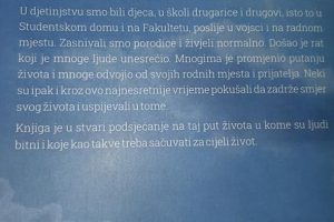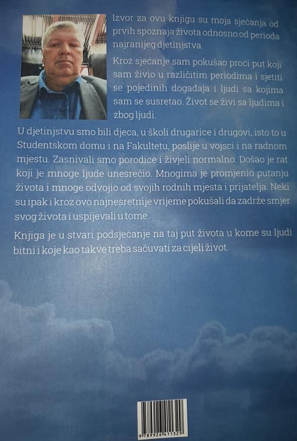 – Može se reći da je to autobiografska knjiga. Izvor su moja sjećanja kroz koja sam pokušao proći put koji sam živio i sjetiti se događaja i ljudi sa kojima sam se susretao. Život se živi sa ljudima i zbog ljudi. U djetinjstvu smo bili djeca, u školi drugarice i drugovi, isto to u studentskom domu i na fakultetu, poslije u vojsci i na radnom mjestu.