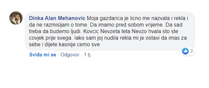 “Divan apel, ja jos uvijek vjerujem da ima dobrih ljudi i nikada ne generalizujem. Stanodavac sam i necu detaljisati ali cu samo kazati…”moje je samo ono sto dam”. Budimo humani ❤”. Jedan od primjera iz Sarajeva.