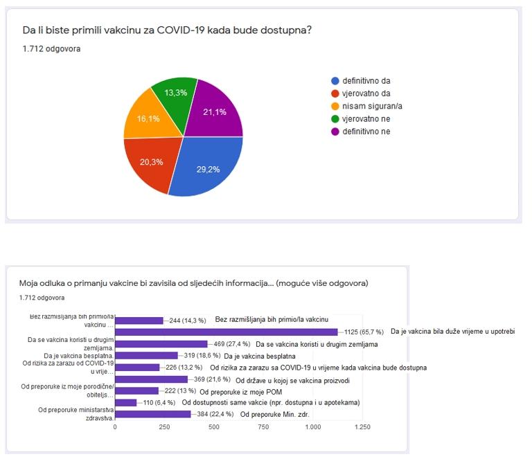Pitanja u anonimnoj anketi su bila u skladu sa Planom za vakcinisanje protiv COVID-19 u FBiH, a prema podacima INZ-a od gotovo 38.000 onih koji su se informisali o samoj anketi, sve odgovore je dalo 1.712 osoba sa prebivalištem na području Zeničko-dobojskog kantona.