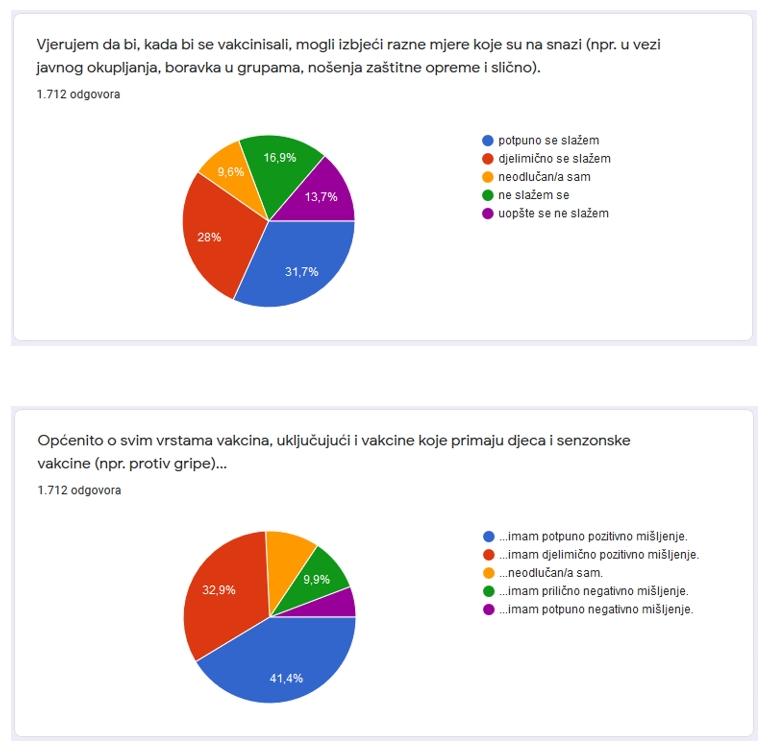 Na kraju, na upit o općenitom stavu prema vakcinama uključujući sezonsku gripu, vakcine koje primaju djeca i slično, potpuno ili djelimično pozitivno mišljenje ima gotovo tri četvrtine (74,3 posto) svih anketiranih, dok desetak posto anketiranih ima negativno mišljenje o vakcinama.