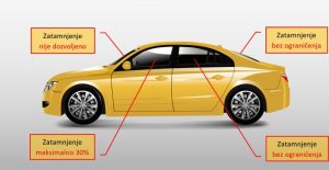Prema pravilniku zatamnjivanje vozila se smije vršiti na sljedeći način: