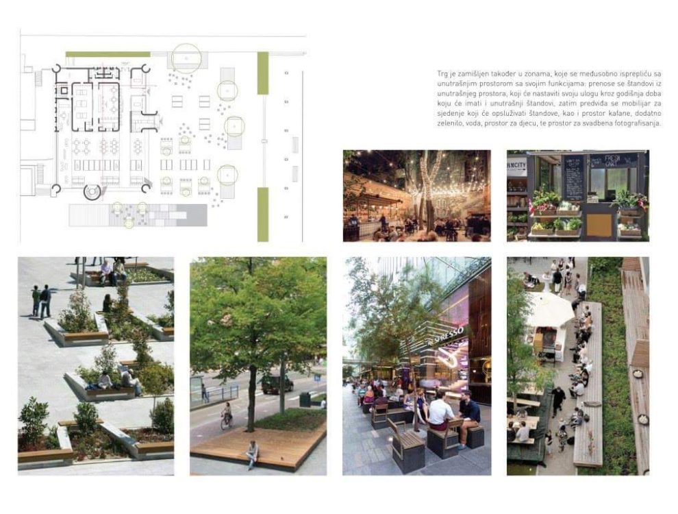 Projekat adaptacije Gradske kafane, trebao je ponuditi novi koncept korištenja postojećeg, napuštenog i u značajnoj mjeri devastiranog objekta, izgrađenog u duhu internacionalne moderne, početkom sedamdesetih godina XX stoljeća, zajedno sa uređenjem javnog prostora koji ga neposredno okružuje (trga ispred i pored objekta).