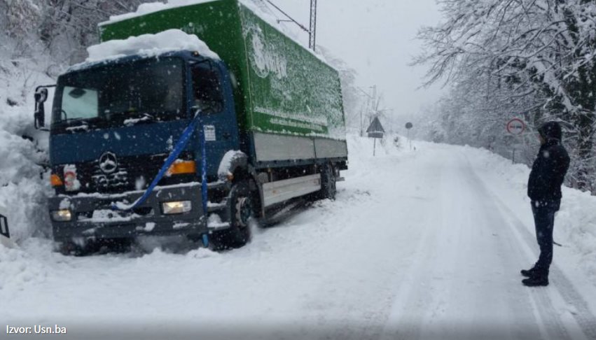 Štab Zimske službe Federacije BiH je proglasio zimske uslove vožnje pa u skladu s tim, zabranjuje se saobraćaj priključnim vozilima na planinskim prijevojima do stvaranja uslova za sigurno saobraćanje.