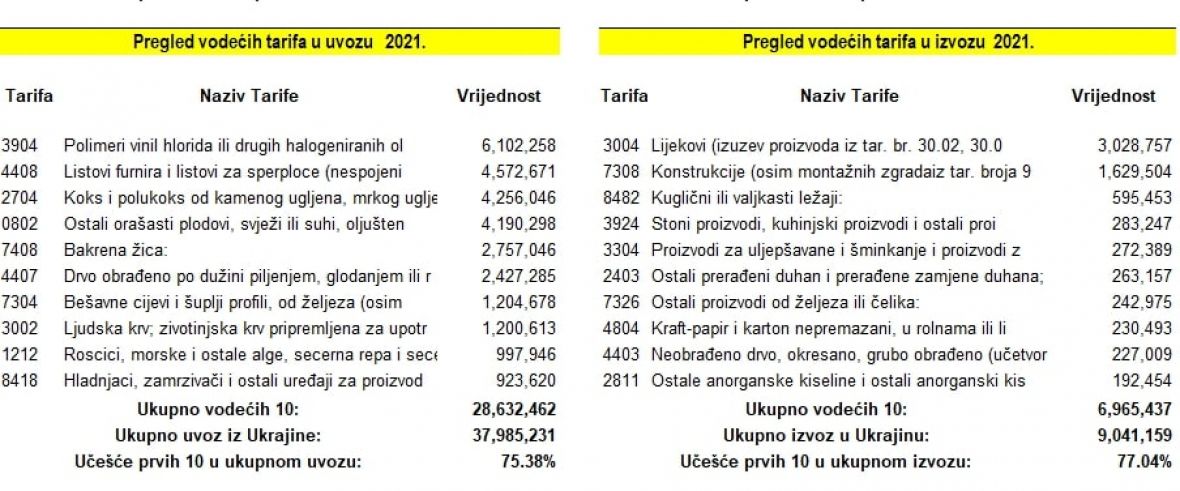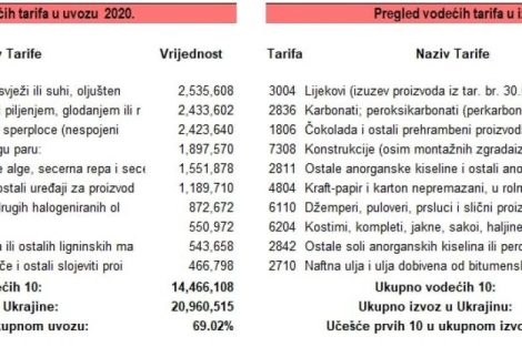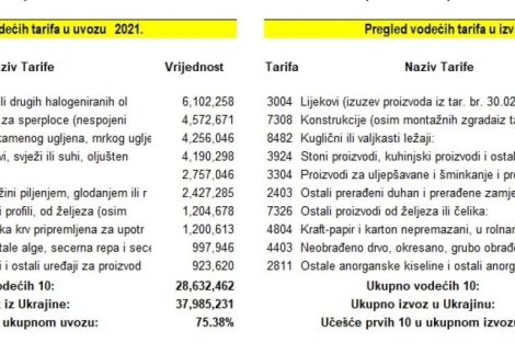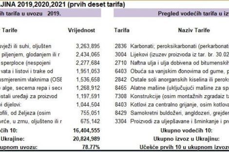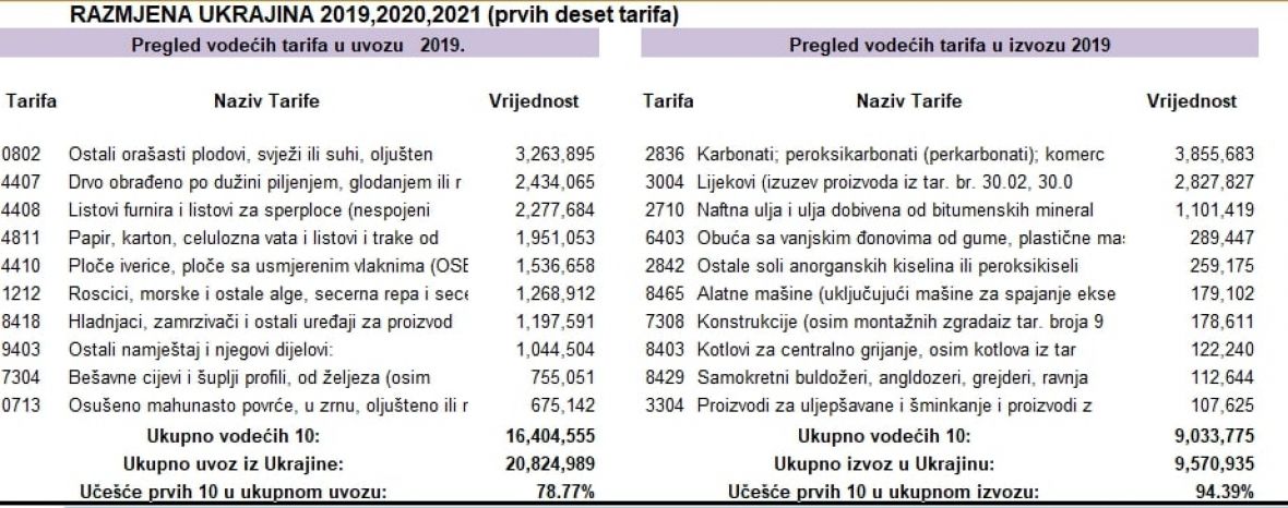 U nastavku pogledajte šta smo sve u protekle tri godine uvezli iz Ukrajine, ali i izvezli iz BiH u Ukrajinu.