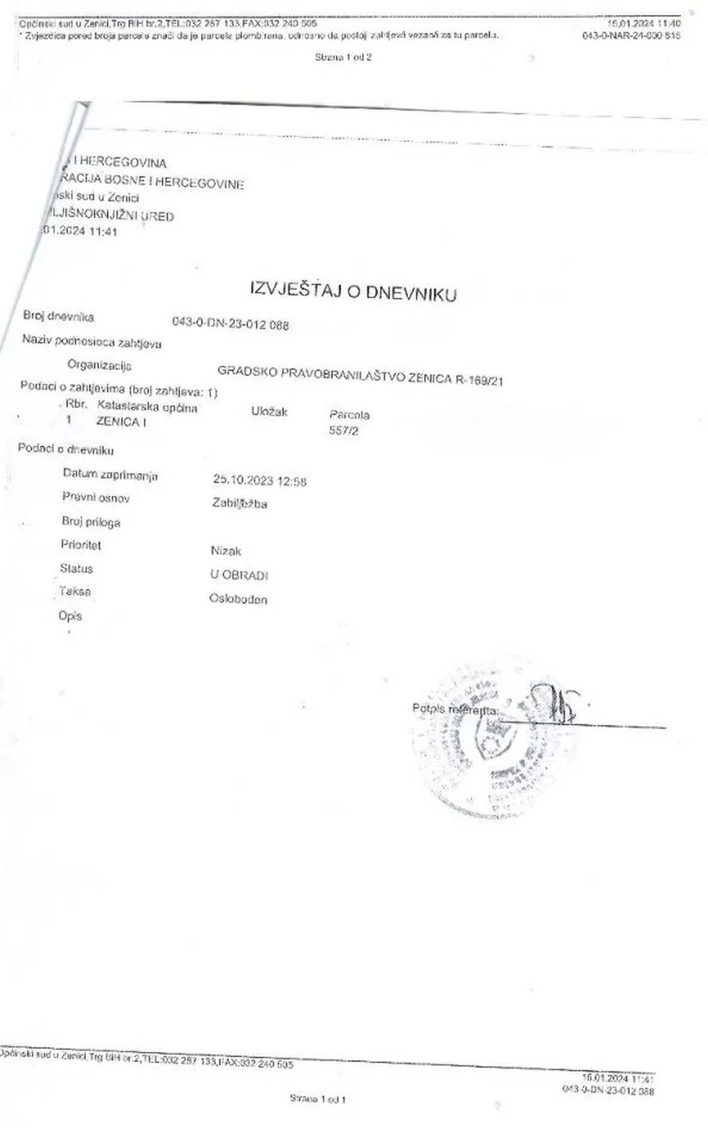 Napominjem su sve parcele oko Autobuske stanice i to parcela 557/1 i parcela 557/3 po zvaničnim ZK ulošcima pripadaju Gradu Zenica. Parcelu 557/3 površine cca 9000 m2 ,na kojoj je stečajni dužnik “Zenicatrans-prevoz putnika” dd u stečaju po tom ZK ulošku bio u “C” teretu, Grad, odnosno Gradsko vijeće grada Zenica je izbrisalo i to za vrijeme stečaja u julu 2021. godine, a u katastarskim podacima i dan danas se vodi da je stečajni dužnik posjednik navedene parcele. (u prilogu posjedovni list 557/3)