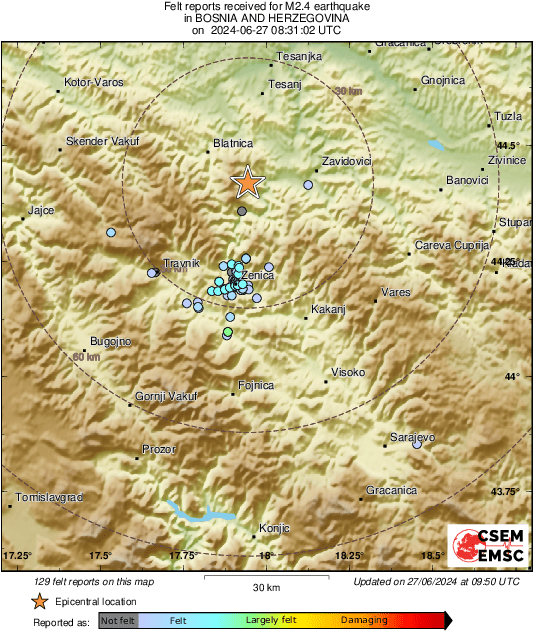 Nakon više od sata, EMSC je zvanično potvrdio da je u 10,31 u Zenici zabilježen zemljotres.