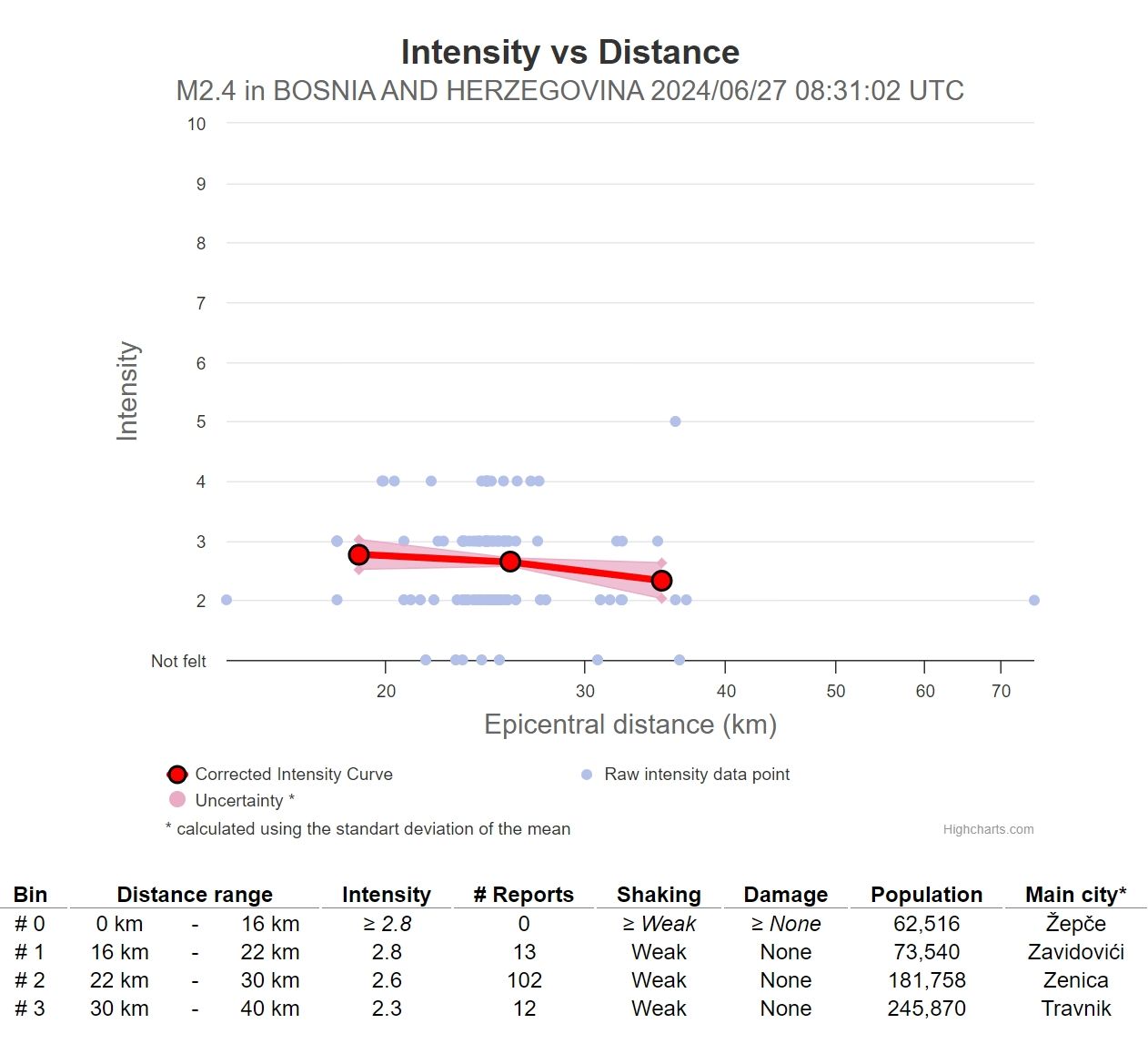 Prema podacima koje je potvrdio, zanimljivo, državni Seizmološki zavod iz Tirane, Albanija, zemljotres je bio magnitude 2.4, na geografskoj lokaciji 44.419 ; 17.943, ali na dubini od čak 41 kilometar.