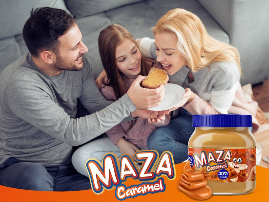 STIGLA JE NOVA MAZA: Uživajte u neodoljivom karamel okusu – Nakon, sada već dobro poznatih okusa Maza lješnjak namaza sa 20% i 30% lješnjaka, te Maza Crunchy-a, kompanija AC Food s ponosom predstavlja ekskluzivno izdanje još jedne Maze, a riječ je o neodoljivom okusu karamele. Maza Caramel sa 30% lješnjaka stigla je na tržište, a oni koji su imali priliku da je probaju okarakterisali su je kao „najbolju do sada“ jer je nova Maza iskustvo karamele kakvo još niste doživjeli. Iz AC Food-a navode kako se radi o sastojcima koji su isti poput onih u premium čokoladnim pralinama.