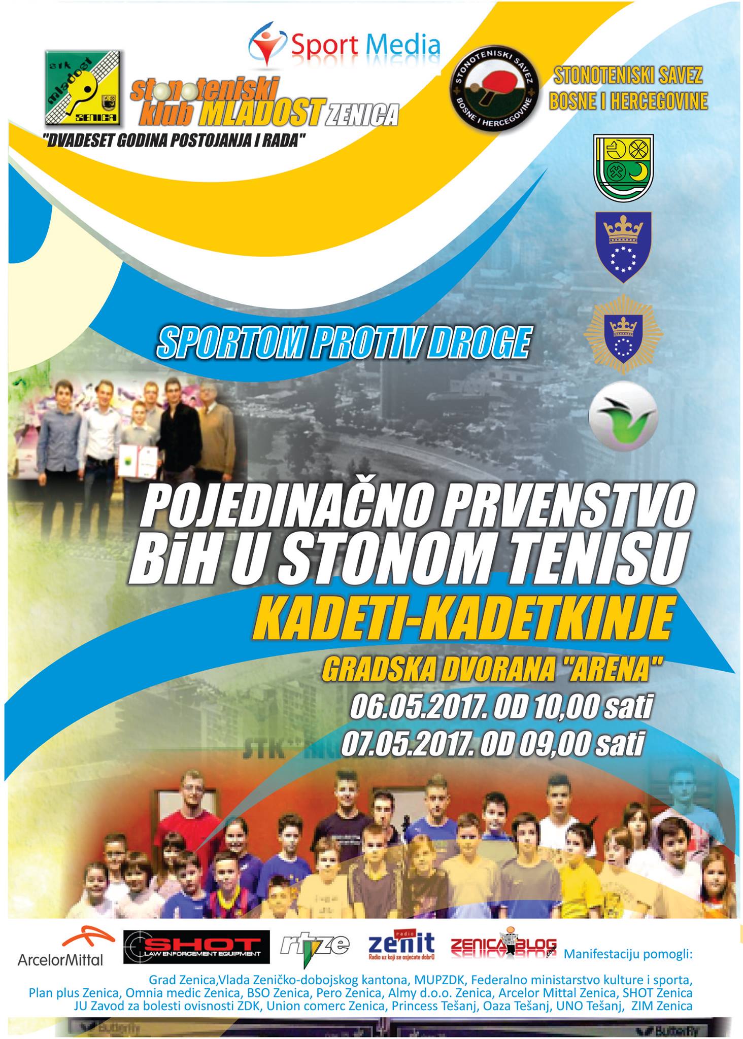 STK Mladost: Stonotenisko pojedinačno prvenstvo BiH u Areni Zenica 6. i 7. maja  – U 2017. godini Stonoteniski klub “Mladost” Zenica obilježava 20-godišnjicu postojanja i rada.