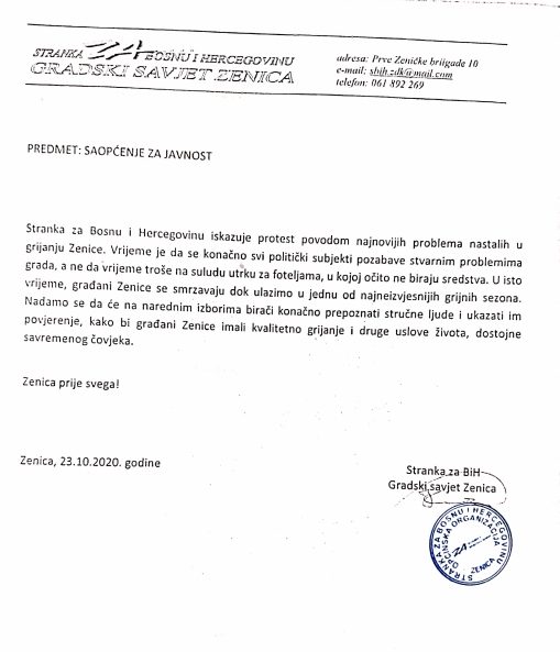Stranka za BiH: saopćenje za javnost