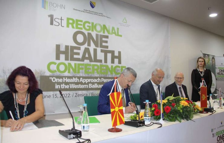 Konferencija je počela potpisivanjem Protokola o naučno-tehničkoj i stručnoj saradnji kroz pristup “Jednog zdravlja” između INZ-a, zatim Instituta za javno zdravlje Vojvodine i Naučnog instituta za veterinarstvo “Novi Sad“ iz Novog Sada (Republika Srbija), Instituta za javno zdravlje na Republika Severna Makedonija i Instituta za hranu Fakulteta za veterinarnu medicine iz Skoplja (Republika Sjeverna Makedonija), Instituta za javno zdravlje Crne Gore i Specijalističke veterinarske laboratorije Podgorica (Crna Gora), kojim je formaliziranna saradnja na formiranju regionalne mreže “Balkan one health network”.