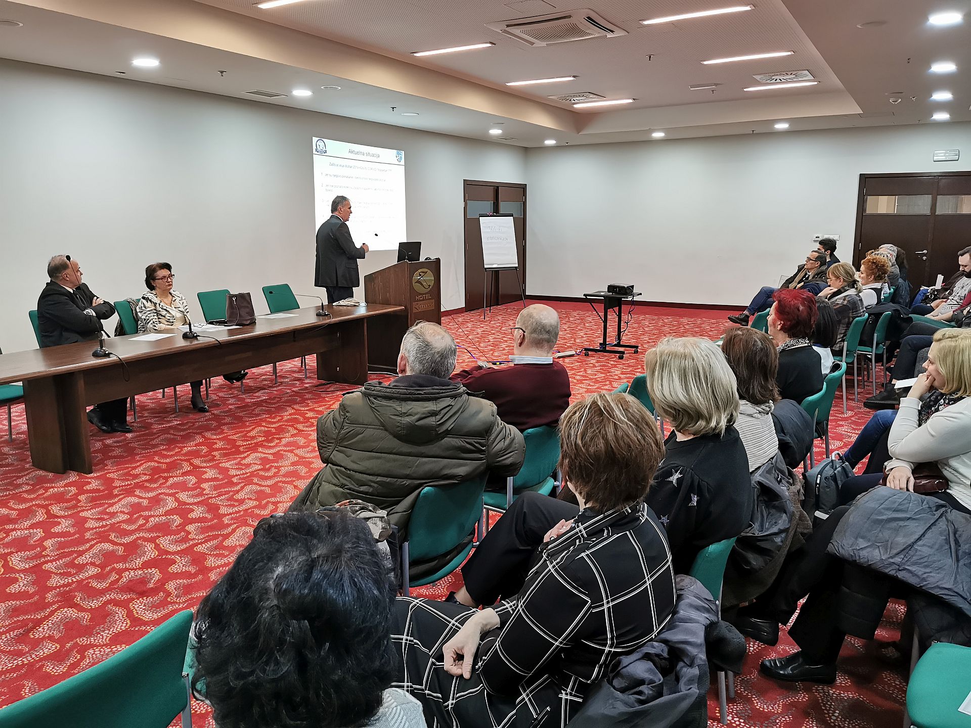Nakon uvodnog obraćanja ministra zdravstva dr. Adnana Jupića, predavanje za ljekare i zdravstvene radnike o korona virusu održali su infektolog dr. Ednan Drljević, načelnik Službe za infektivne bolesti u Kantonalnoj bolnici Zenica i epidemiologinja dr. Fatima Bašić, načelnica Službe za epidemiologiju u Institutu za zdravlje i sigurnost hrane u Zenici.