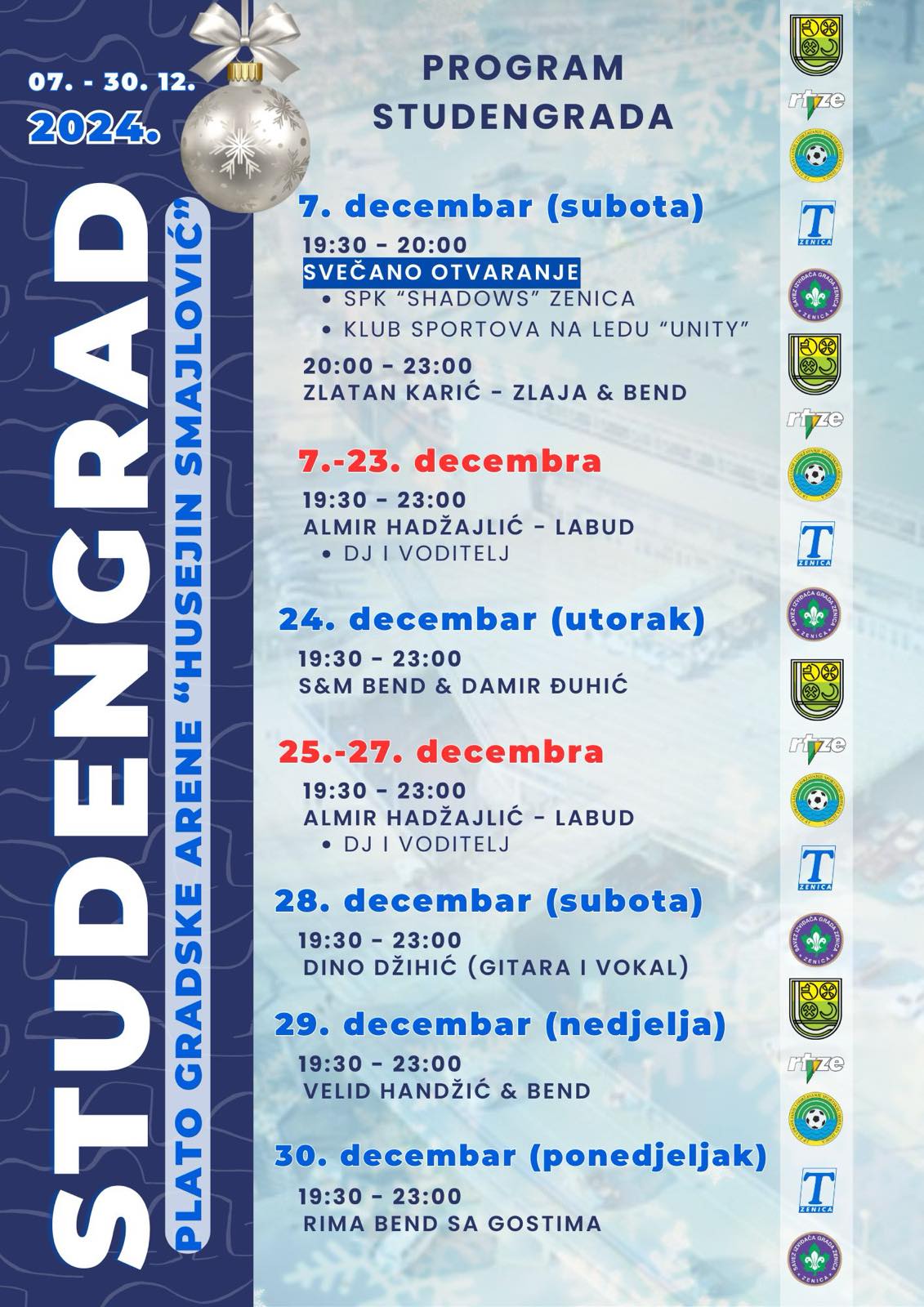 U organizaciji JP za upravljanje i održavanje sportskih objekata d.o.o. Zenica i uz podršku RTV Zenica, JP Tržnica Zenica, Saveza izviđača Grada Zenica i Gradske uprave ove godine će već sada tradicionalni “Studengrad” biti organizovan na platou ispred Gradske arene “Husejin Smajlović”.