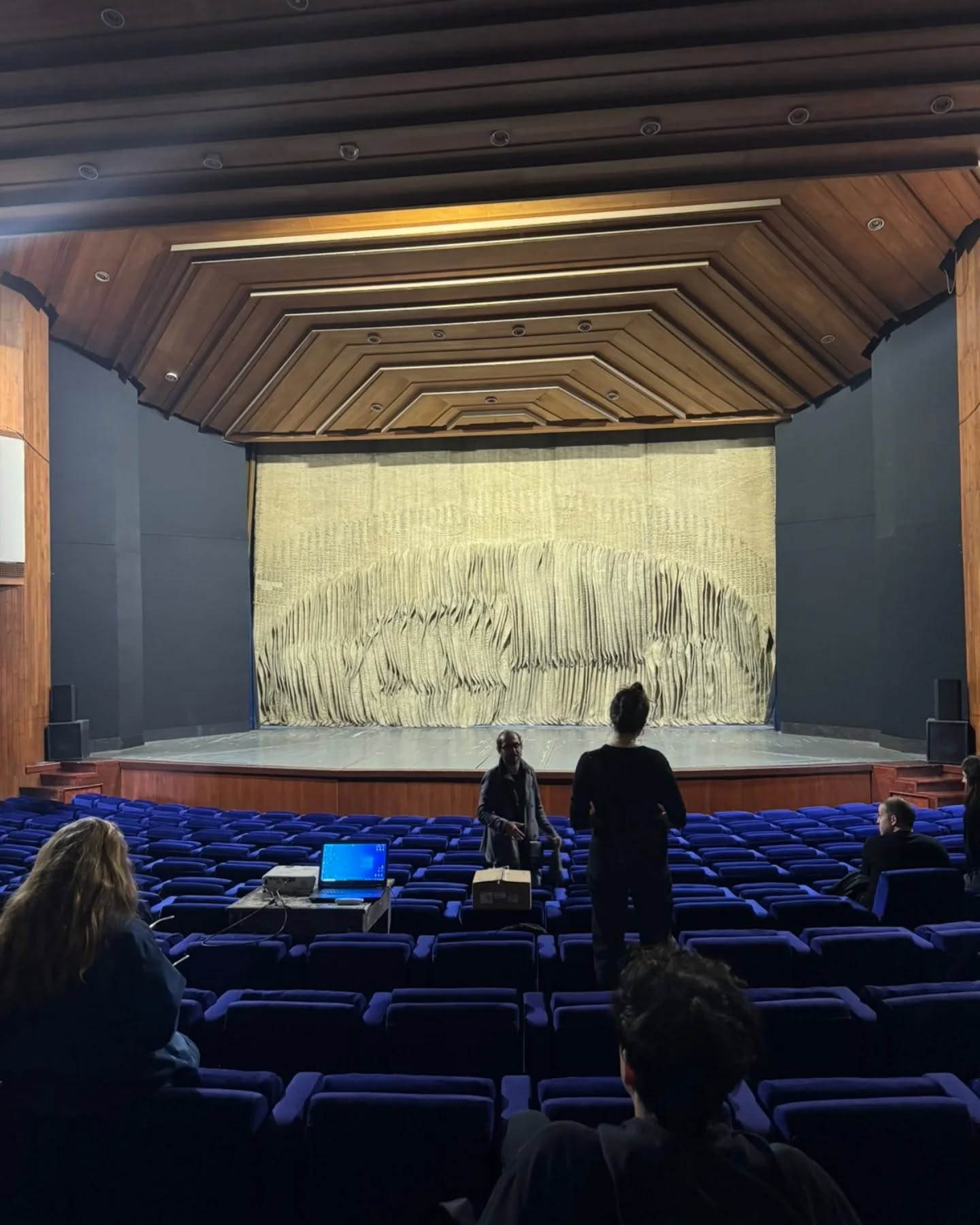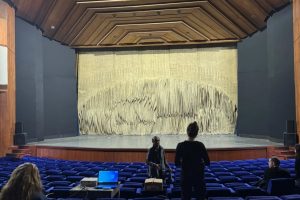Razlog njihovog dolaska u Zenicu bila je želja da detaljnije upoznaju enterijer pozorišta, čije je pojedine dijelove projektovala istaknuta arhitektica Ognjenka Finci. Posebnu pažnju gostiju privukla je velika pozorišna zavjesa – tapiserija koju je kreirala renomirana umjetnica Jagoda Bujić.