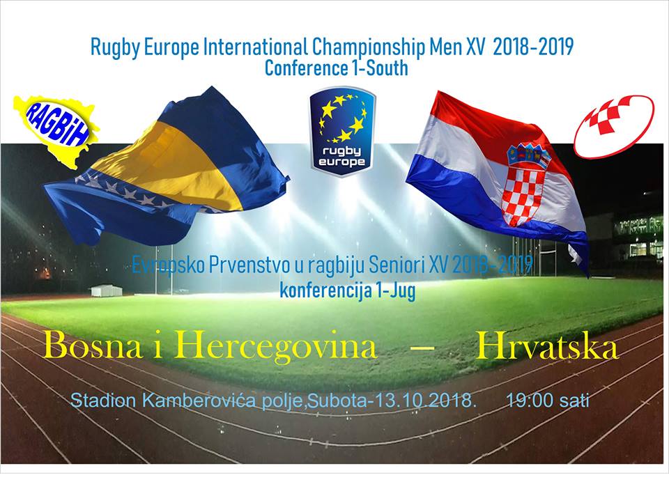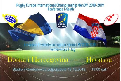 Subota u 19 – Kamberovića polje – Reprezentacija BiH u ragbiju u Zenici dočekuje Hrvatsku – Bosanskohercegovačka seniorska reprezentacija u ragbiju XV , u subotu 13.oktobra, u okviru kvalifikacija za Evropsko prvenstvo 2018/19, konferencija Jug-1 igra meč sa selekcijom Hrvatske.
