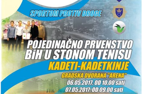 -Tim povodom klub Stk Mladost Zenica i stonoteniski savez BiH organizuju 06. i 07.05.2017. godine u zeničkoj Areni, pojedinačno prvenstvo BiH u stonom tenisu za kadete/kadetkinje (do 15 godina). Takmičenje u subotu počinje od 10,00 sati, kada je predviđeno i svečano otvorenje, a u nedjelju od 09,00 sati, kada su na rasporedu završni mečevi, te borba za medalje. Na prvenstvu će učestvovati 80 takmičara, (53 u muškoj i 27 u ženskoj konkurenciji) najboljih kadeta i kadetkinja iz cijele Bosne i Hercegovine (Zenica, Banja Luka, Sarajevo, Prijedor, Tuzla, Ilijaš, Cazin, Brčko, Foča i drugi)-, kazao je, pored ostalog, Mustafa Dizdarević.
