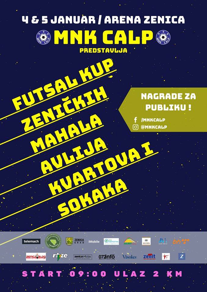 Gradska Arena Husejin Smajlovic u Zenici je spremna za dvodnevni Futsal kup zeničkih mahala, avlija, kvartova i sokaka 2020. u organizaciji federalnog prvoligaša MNK Calp.