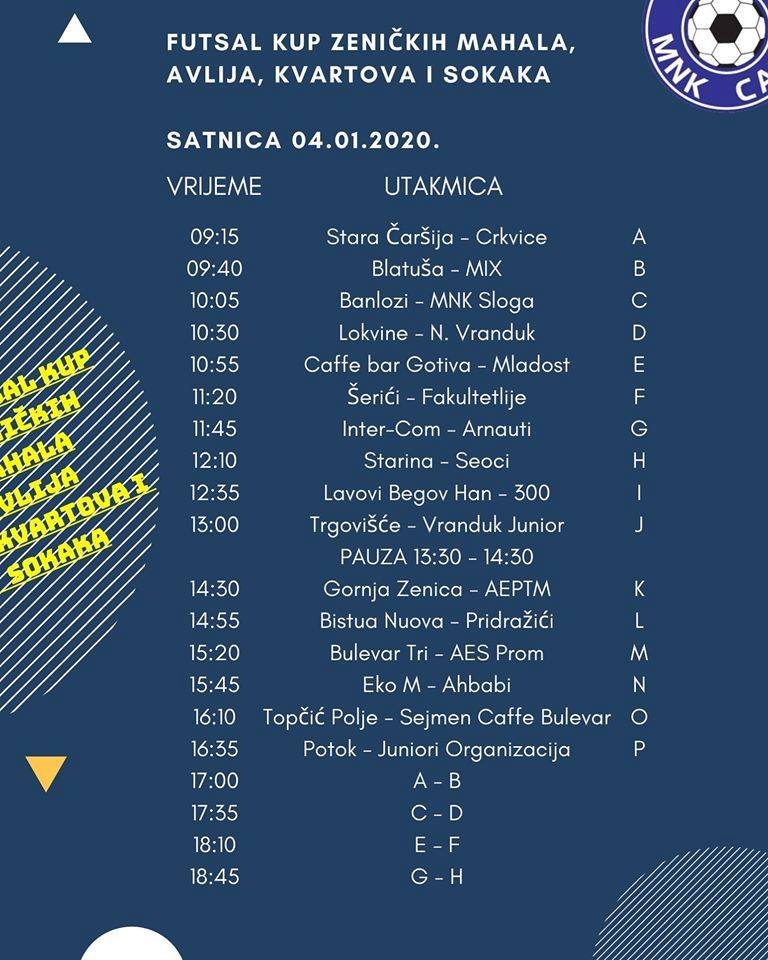 U prilogu pogledajte raspored i satnicu prvog i drugog dana takmičenja (subota i nedjelja , 04 i 05. januar):