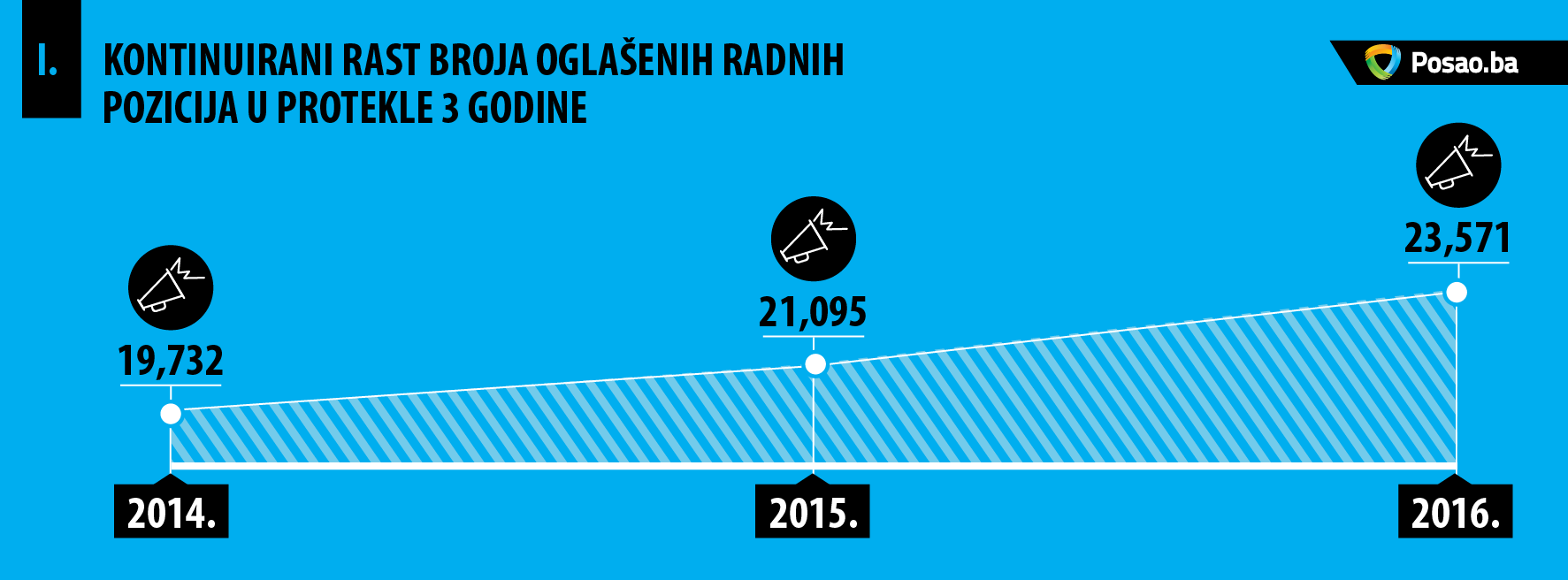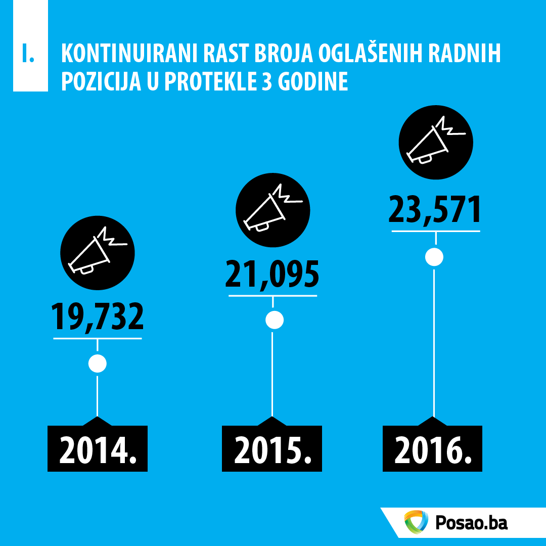 Rezultati pokazuju da je u prvoj polovini 2017. godine objavljeno ukupno 5.973 oglasa u okviru kojih je objavljeno 11.241 poslova. U odnosu na isti period 2016. godine, broj oglasa je porastao za 14% dok je u odnosu na isti period 2015. godine porastao za  čak 30%.