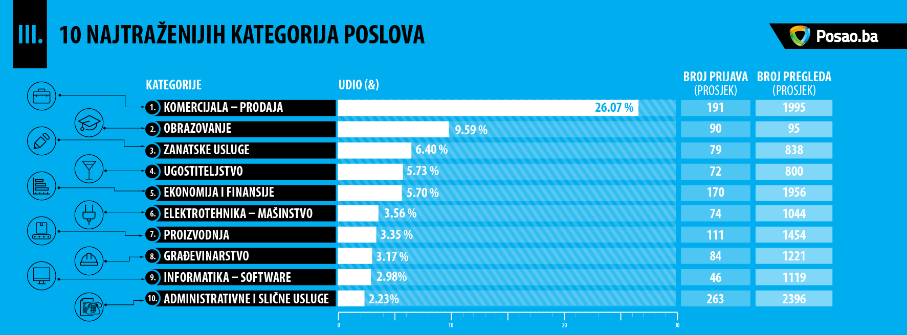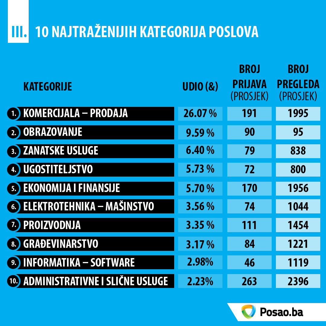 Koje kategorije poslova su bile najtraženije?