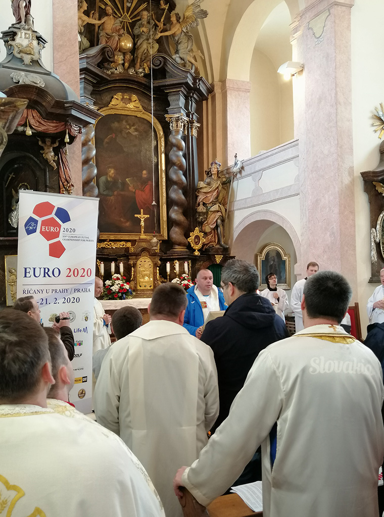 Prag je od 17. do 21. februara domaćin 14. europskog prvenstva za svećenike na kojemu nastupa 17 reprezentacija s oko 200 sudionika. Tijekom natjecateljskog dana 18. veljače koji je započeo slavljenjem sv. mise, odigrane su sve utakmice po skupina te susreti četvrtfinala. Najbolje rezultate ostvarili su selekcije: Bosne i Hercegovine, Portugala, Poljske i Slovačke koje će susrete polufinala i finala igrati u četvrtak, 20. veljače.