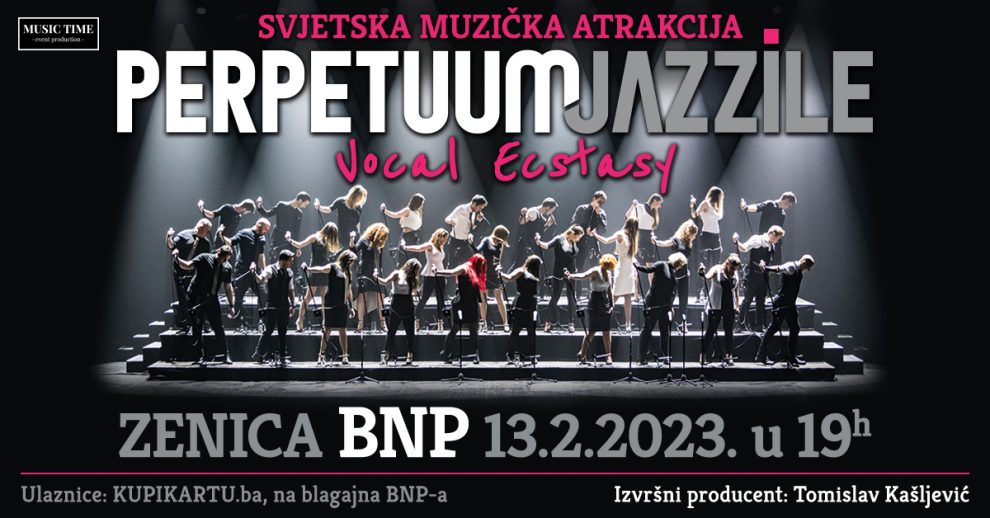 Jedan od najvećih i najspektakularnijih vokalnih sastava na svijetu Perpetuum Jazzile 12. februara 2023. godine prvi će put nastupiti u Zenici u BNP-u s početkom u 19. sati.